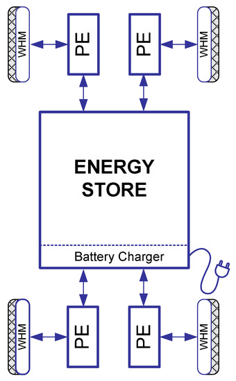Figure 4). The inverter is located not far from the engine on board the vehicle. Similar to the inverter, the energy storage is located centrally in the vehicle frame. Thanks to the modular design of the energy storage, it was possible to build replaceable cassettes containing different types of cell chemistry and corresponding connection configurations, the details of which are presented in