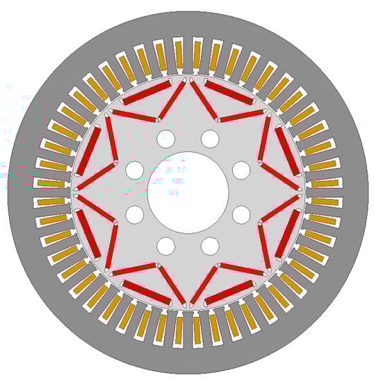 2. Fang, L.; Jung, J.; Hong, J.; Lee, J. Study on high-efficiency performance in interior permanent-magnet synchronous motor with double-layer PM design. IEEE Tras. Magn. 2008, 44, 4393–4396. [Google Scholar] [CrossRef]