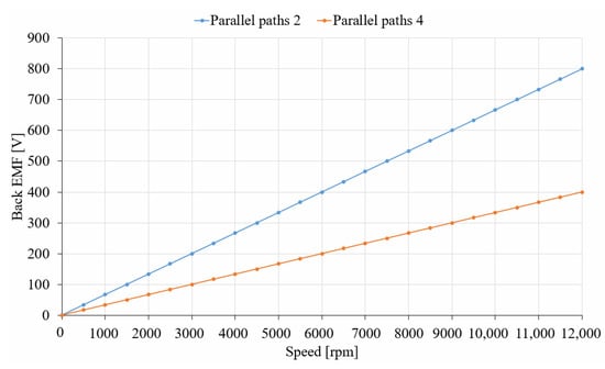 Figure 3. Analysis of back electromotive force for selecting the base speed of the parallel path 4 model.