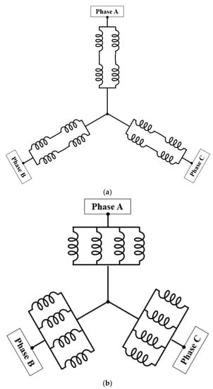 24. Raziee, S.M.; Misir, O.; Ponick, B. Combined star-delta winding analysis. IEEE Trans. Energy Convers. 2018, 33, 383–394. [Google Scholar] [CrossRef]