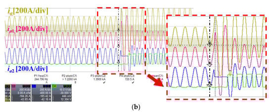 Figure 14. Experimental current waveform. (a) Step 1 to step 2. (b) Step 2 to step 1.