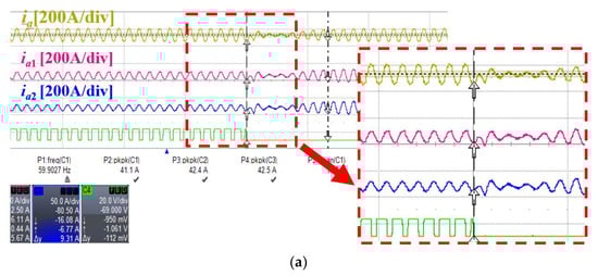 Experimental current waveform. (a) Step 1 to step 2. (b) Step 2 to step 1.