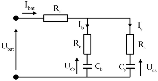 The voltage balance in the battery equivalent circuit of Figure 4 can be expressed by