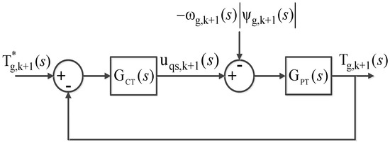 The reference reactive power is set to zero, and the reference active power is obtained through the multiplication of the reference generator torque and reference generator speed ; both are obtained from the wind turbine power management system as illustrated in Figure 1. On the other hand, the predicted values and are calculated as follows:
