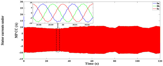 To avoid the risk of wrong wf selection, an orientation towards a weighting-free MPC has aroused great interest. This has been achieved through selecting terms of cost function of the same type; for example, the FCS principle has been used to formulate the model predictive current control (MP CC) technique as stated in [41]. The MP CC has showed its superiority over the FOC in terms of faster dynamic response and reduced complexity rate, in addition to not using a weighting value in comparison with the MP DTC and MP DPC. However, the computation burden is still challenging.