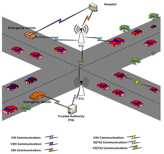 In the modern age, a lot of accidents occur every day due to rapid motorizing. It is a big challenge to identify the accident location to provide emergency services, such as an ambulance or first aid. If there is a lot of traffic, rescue services cannot get to their target on time, which cause the loss of lives. Recently, the authors suggested a visual emergency vehicle priority system for VANETs based on sensors [24]. The auditory sensors connected to RSUs detect the existence of an emergency vehicle as well as measure the distance by using various distance measurement algorithms from the road intersection in the proposed scheme. The information is submitted to the traffic control center, which will change the signals of traffic to get emergency services out of the congested traffic lane as quickly as possible. The authors suggested a signaling scheme to clear the way for an ambulance or other emergency services [9], in which the green light is turned on for the emergency vehicle’s path and does not turn red before the emergency vehicle exits the route. In [25], the authors proposed an automatic accident detection prototype model using IoT and VANET Network deployed in the vehicle with the help of sensors that detect accidents as well as emergency levels. The proposed model supports delivering medical aid at the correct time after detecting the accident. The main objective of the internet of things and VANETs is to prioritize emergency vehicles. The vehicular sensor networks (VSNs) concept in an IoT-based vehicular paradigm, focusing on the security aspects and, authors discussed the VSN’s design features for reliability, relevant communication technologies, robustness, and their security concerns [26].