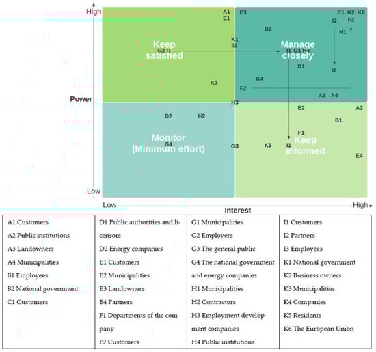 Table 3 lists the stakeholders that were cited by interviewees (A–K) as being involved in their projects. In the following section, the most frequently mentioned stakeholders will be examined from the interviewees’ perspective—employees, customers, municipalities, and national governance and public institutions.