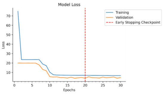 Training and validation loss, or mean square error in model development phase. Early stopping callbacks are used to halt the model if no improvement in loss for a certain number of predefined epochs is evident.