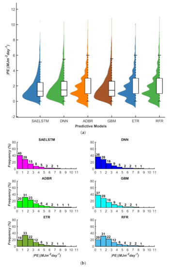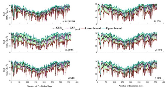 This study also use the promoting percentage of absolute percentage bias (), mean absolute error (), and root mean square error () [128] to compare various models that have been used in the GSR prediction.