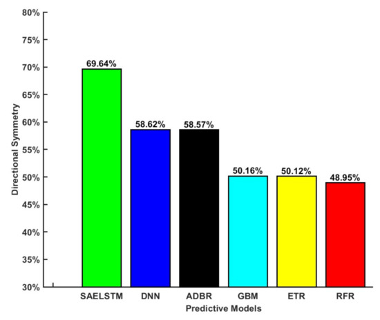 where , , and refer to the objective model (i.e., SAELSTM) performance metrics and , , and refer to the benchmark model performance metrics.