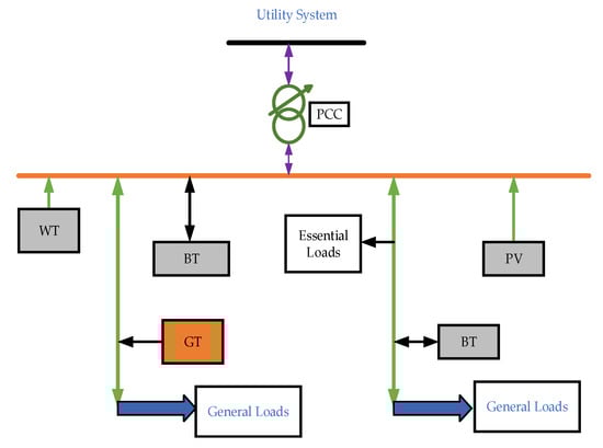 - Zhou, B.; Zou, J.; Chung, C.Y.; Wang, H.; Liu, N.; Voropai, N.; Xu, D. Multi-Microgrid Energy Management Systems: Architecture, Communication, and Scheduling Strategies. J. Mod. Power Syst. Clean Energy 2021, 9, 463–476. [Google Scholar] [CrossRef]
