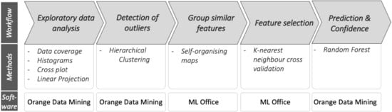 Figure 3. Workflow, methods and software used in this study. Software used included Orange Data Mining [] and Machine Learning (ML) Office []. - 2.