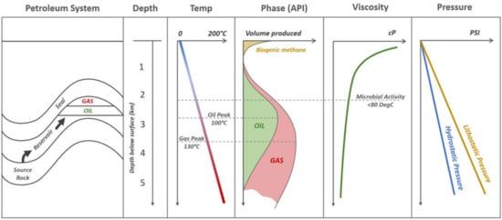 - Larter, S.; Wilhelms, A.; Head, I.; Koopmans, M.; Aplin, A.; Di Primio, R.; Zwach, C.; Erdmann, M.; Telnaes, N. The controls on the composition of biodegraded oils in the deep subsurface—Part 1: Biodegradation rates in petroleum reservoirs. Org. Geochem. 2003, 34, 601–613. [Google Scholar] [CrossRef]