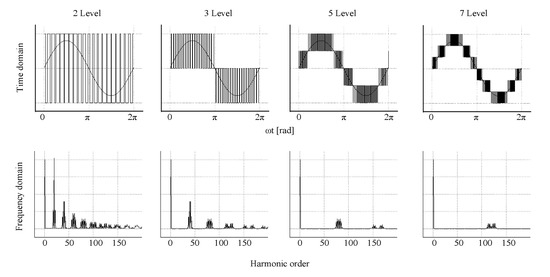 - Lower harmonic content and more concentrated in the fundamental component and at high frequencies. As illustrated in Figure 1: (i) the greater the number of levels, the more closely the output waveform resembles a sinusoid; (ii) the higher-frequency harmonic content allows for easier filtering;