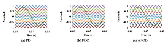 - Sochor, P.; Akagi, H. Theoretical and experimental comparison between phase-shifted PWM and level-shifted PWM in a modular multilevel SDBC inverter for utility-scale photovoltaic applications. IEEE Trans. Ind. Appl. 2017, 53, 4695–4707. [Google Scholar] [CrossRef]