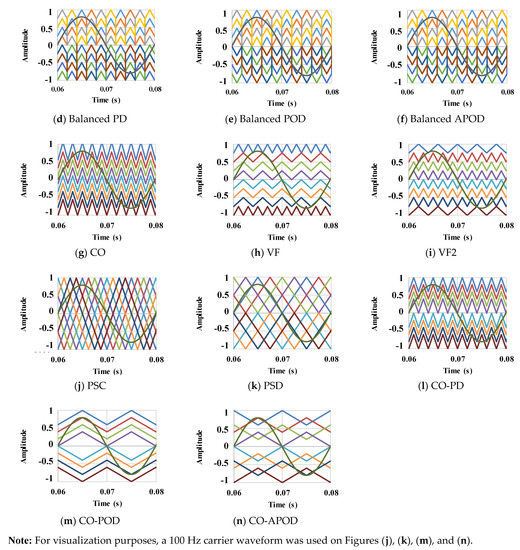 - Tolbert, L.M.; Habetler, T.G. Novel multilevel inverter carrier-based PWM method. IEEE Trans. Ind. Appl. 1999, 35, 1098–1107. [Google Scholar] [CrossRef]