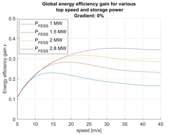 Three percent gradient efficiency gain for multiple top speeds and FESS powers.