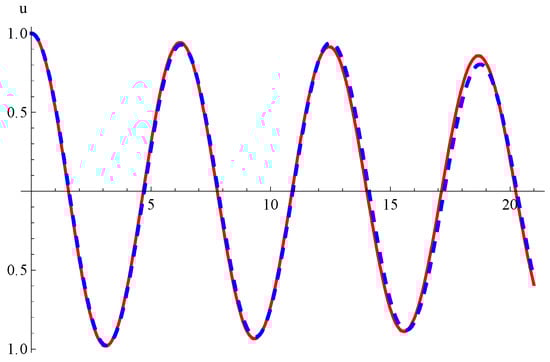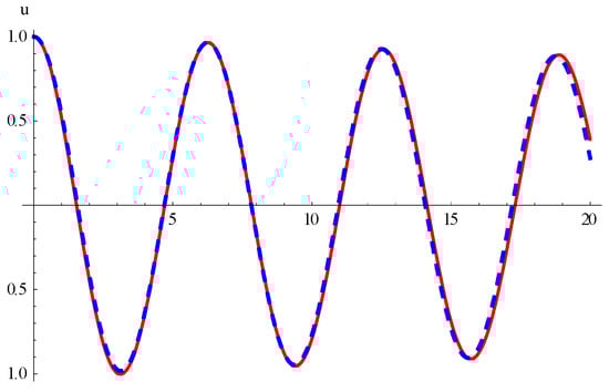 In Figure 4 and Figure 5, we compared the numerical solutions of Equations (10) and (11), and the approximate solutions (60) and (61), respectively, for the case of internal resonance.