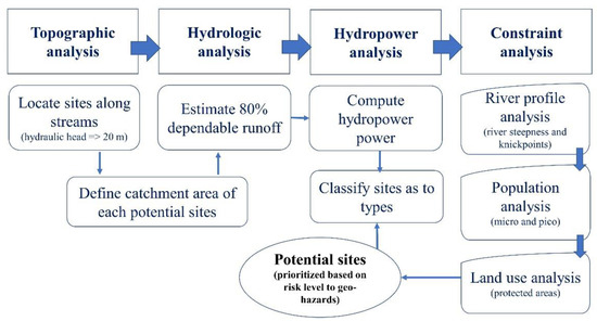 General workflow of the identification of potential small-scale hydropower sites.