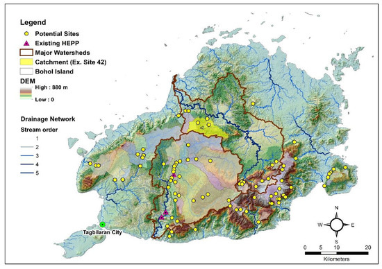 The province of Bohol has rich natural resources. While addressing the sustainable development goal of providing clean energy, renewable energy sources could ensure accessibility and availability of the needed energy, especially in rural areas. Rapid resource assessments and feasibility studies on potential hydropower generation sites were critical actions recommended by the Technical Working Group [4] to augment the power supply in the province. The assessment made by Pojadas et al. [42] found that the island’s technical potential for domestic renewable energy resources, from any combination of solar PV, wind, biopower, and hydropower projects, can meet the 35% share of the renewable energy portfolio. On account of these resources and the natural disasters experienced by the island, the study assesses its hydropower potential incorporating landform dynamics following methods discussed previously.