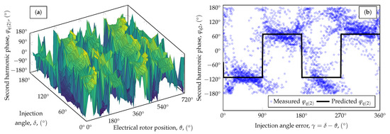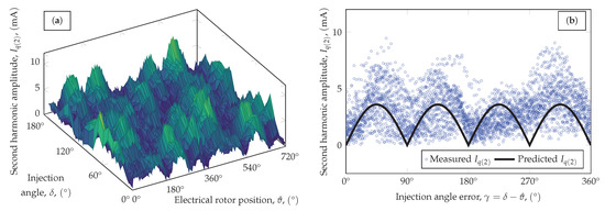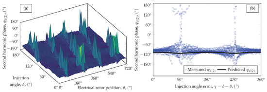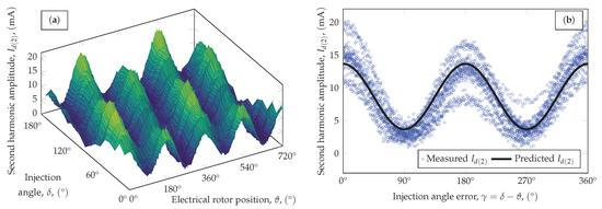 The second spatial harmonics consist of two periods during an electrical revolution, hence inductance-based anisotropy tracking always yields an ambiguity of 180 in electrical angle and the linearized flux model (6) is unsuitable for polarity detection [23,39].