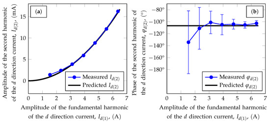The main disadvantage of the linear model is the unsuitability for polarity detection. To overcome this limitation, we introduced the quadratic term of the flux-linkage in our PMSM model as described in the previous sections. The resulting nonlinear model predicts polarity dependent behavior. In this section we present the effect of the quadratic terms on the phase currents, namely the second-harmonic generation. Measurement data are also presented to demonstrate the correctness of the model.