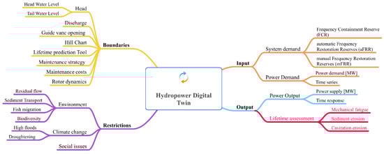 Figure 3 shows the newly installed hydropower digital twin to ensure data exchange at the energy source/energy vector interface. For the first time, we get the opportunity to exchange data among the system boundaries to pursue the energy transition towards zero emissions in 2050 holistically. With the information of the lifetime prediction of the energy resource (see the red branch-Lifetime assessment-on the right side of Figure 3) on the energy system level, we can include the availability of the same in the long-term energy analyses and thus develop better forecasting models. This enables better scientific support for the societal transformation of energy production that will impact our future daily lives. The following points need to be considered:
