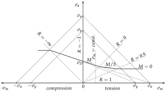 - Radaj, D.; Vormwald, M. Ermüdungsfestigkeit, 3rd ed.; Springer: Berlin/Heidelberg, Germany, 2007. [Google Scholar]