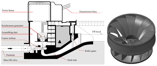 - Guillaume, R.; Deniau, J.L.; Scolaro, D.; Colombet, C. Influence of rotor-stator interaction on the dynamic stresses of Francis runners. In Proceedings of the 26th IAHR Symposium on Hydraulic Machinery and Systems, Beijing, China, 19–23 August 2012; Volume 15, p. 52011. [Google Scholar] [CrossRef]