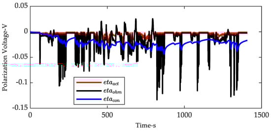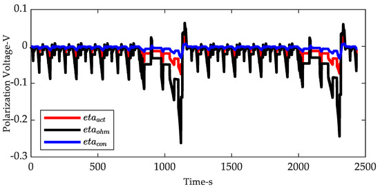 - Polarization has been considered an influential factor in numerous studies related to the thermal management system of lithium-ion batteries. In [13], the respective proportion of ohmic internal resistance and polarization internal resistance under different discharge rate conditions were explored to summarize the contribution of polarization in the accumulation of internal battery temperature at the early stage of thermal runaway, which provides a theoretical basis for safer battery design. As discussed in [14,15], the heat of polarization is the main component of the internal heat production of the cell and consists of four parts: ohmic heat, polarization heat, reaction heat, and side-reaction heat. Taheri P, Mansouri A et al. developed a two-dimensional analytical model of the lithium-ion battery, and a concentration-independent polarization voltage was derived to explore the application for battery thermal management through the thermal coupling model [16]. Goonetilleke D. et al. found that increasing the ambient temperature increased the reaction rate inside the battery and reduced polarization inside battery cells [17]. In [18], the optimal alternating current (AC) frequency was determined based on the Thevenin-thermal coupling model in the frequency domain, and an internal heating strategy based on a constant polarization voltage at low ambient temperatures was developed, which achieved a good balance between cell aging and heating efficiency.