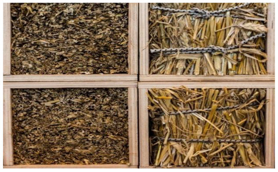 Comparatively, straw is a material with a higher degree of research and technology development. A technology called “straw bale” has been developed consisting of the formation of straw cubes used as infill of walls and “straw bale loadbearing”, where straw bales are used as a load-bearing structure of the building. Technologies based on the modern technical knowledge that involves a series of testing allow assuring very good parameters of buildings made of straw and confirm that this material has a huge innovative potential (Figure 1) [34,35,36,37].