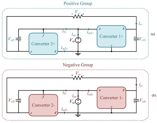 Generalized view of differential connection between two basic converters of the same group: (a) positive group and (b) negative group.