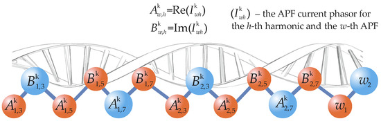 - is the APF current phasor for the h-th harmonic and the w-th APF: