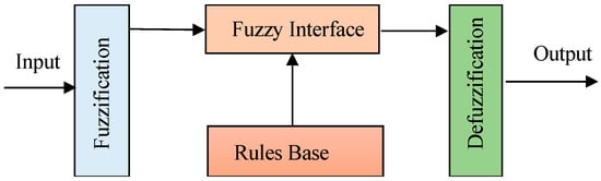 The fuzzy controller produces superior speed tracking compared to other control techniques used for PMSM speed control, but the fuzzy and membership function primarily relies on expert proficiency [63]. The fuzzy prediction control of the current predictive deadbeat technique, which can offset the deficiency of parameters in real time by weight constant, is proposed in [60,64]. A basic internal structure diagram of the FLC is given in Figure 5, and a structure diagram of the FLC controller is shown in Figure 6.