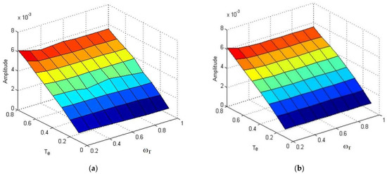 The amplitude of the rotor fault related harmonic obtained using (a) RDFT and (b) Goertzel’s algorithm for variable number of broken rotor bars and variable electromagnetic torque and rotor speed, with no slip estimation error assumed.