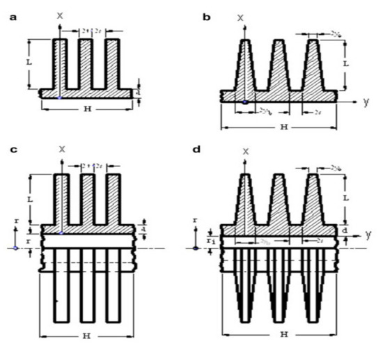 - Nagarani, N.; Mayilsamy, K.; Murugesan, A.; Kumar, G.S. Review of utilization of extended surfaces in heat transfer problems. Renew. Sustain. Energy Rev. 2014, 29, 604–613. [Google Scholar] [CrossRef]
