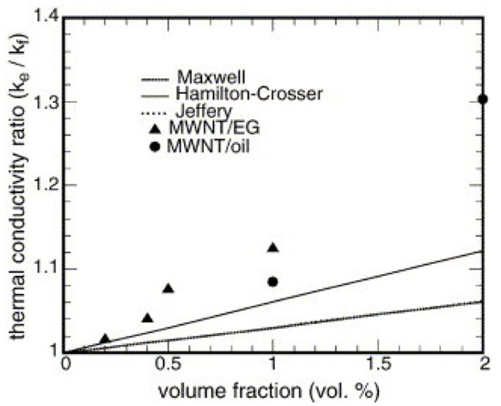- Vajjha, R.S.; Das, D.K. Experimental determination of thermal conductivity of three nanofluids and development of new correlations. Int. J. Heat Mass Transf. 2009, 52, 4675–4682. [Google Scholar] [CrossRef]