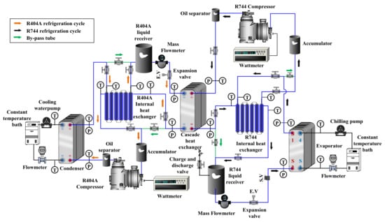 - Zhang, Y.; He, Y.; Wang, Y.; Wu, X.; Jia, M.; Gong, Y. Experimental investigation of the performance of an R1270/CO2 cascade refrigerant system. Int. J. Refrig. 2020, 114, 175–180. [Google Scholar] [CrossRef]