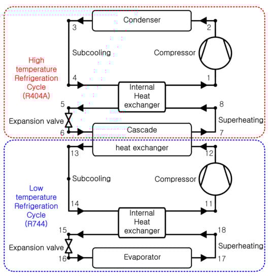 - Kilicarslan, A.; Hosoz, M. Energy and irreversibility analysis of a cascade refrigeration system for various refrigerant couples. Energy Convers. Manag. 2010, 51, 2947–2954. [Google Scholar] [CrossRef]