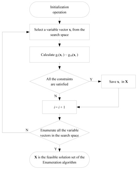 (Step 3): Repeat (Step 2) until the algorithm enumerates all the variable vectors in the search space. Then, is the feasible solution set of the Enumeration algorithm.