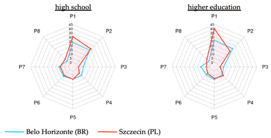 A convenience sampling procedure was used in both Belo Horizonte and Szczecin. Additionally, a snowballing procedure was used in Belo Horizonte, since we have requested that respondents share our survey. According to Marta-Pedroso et al. [28], in-person interviews and web-based surveys produce similar results. However, obtaining a stratified sample is not always possible with a convenience sample. The most significant limitation of this sampling procedure is that our results are limited to the respondents; despite this, findings could provide insights for more in-depth analysis.