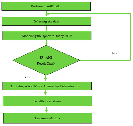 Gundogdu and Kahraman [24] created the SF-AHP approach, which is an extension of AHP that also uses spherical fuzzy sets. SF-AHP is used in this work to determine the weight of the individual selection criteria. Gundogdu and Kahraman’s SF-AHP approach consists of 5 stages [24]: