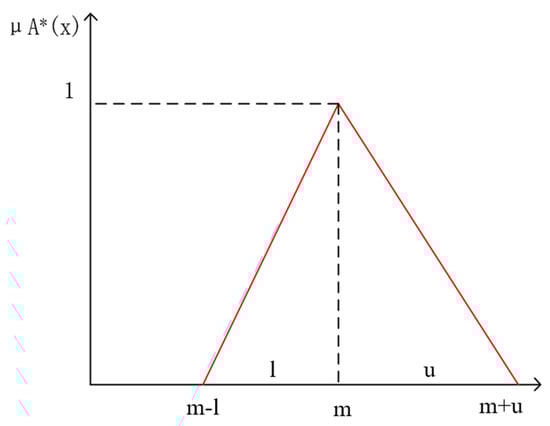 In Figure 5, m is the kernel of A*; u + l is the blindness of A*; u is the membership function of the triangular fuzzy number; A* is the triangular fuzzy number, denoted as .