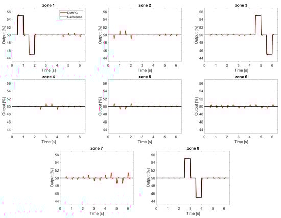 Output performance for the distributed MPC algorithm for the 4/4 configuration.
