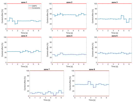Control effort for the distributed MPC algorithm for the 4/4 configuration.