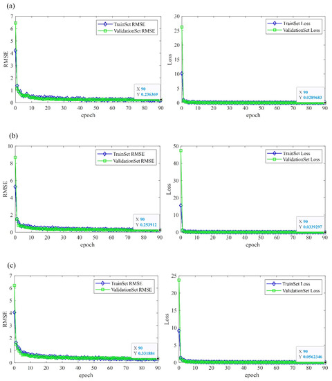 In this study, the root mean square error (RMSE) and loss were selected to evaluate the quality of the prediction results, and loss is the square of RMSE. The smaller the RMSE or the loss function, the better the quality of the model. The calculation formula of RMSE was
