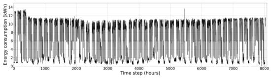 The data used in this study were sourced from an ESCO that offers services to warehouse owners and operators worldwide. Specifically, this ESCO specialises in the replacement of legacy lighting systems with LED lighting and intelligent controls and the installation and generation of electricity through solar PV. The ESCO operates an EPC arrangement with customers and thus generates its income from reducing the energy consumption and energy costs of client facilities. The dataset comprises 8040 records of hourly energy consumption from an 11-month period from 1 January 2020 to 30 November 2020 for a non-refrigerated logistics facility located in Ireland. Figure 1 presents the time series of the dataset used in this work while Table 1 presents some descriptive and quantile statistics.