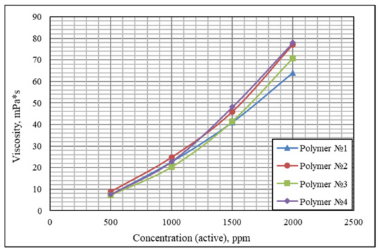 Various chemicals are commonly used in enhanced heavy oil recovery or its inflow stimulation processes [3,4,5,6]. However, polymers, surfactants, and alkali are the most popular chemicals for these processes, which is the main laboratory-based studies’ [7,8] and industrial implementation. The technology of increasing oil recovery by polymer injection has been applied since the late 1960s, and currently, there are more than 300 watering projects in the world [9,10,11,12], of which only a few are from Russia [13,14]. At the same time, it should be noted, that polymer flooding is more often used as a tertiary method of production (i.e., after the traditional flooding), its application in new fields shows the best results, confirmed by pilot tests in the Pelikan Lake field [15]. Efficiency is achieved not only from the economic and technological viewpoints but also enables the implementation of environmentally safe management methods at the early stages of development, reducing adverse environmental impact [16]. It should be noted that there are also other high-viscosity oil production polymer-flooding-based methods [17,18,19,20] have also proven successful in various geological and physical conditions. However, their use at the studied facilities requires additional research in terms of laboratory studies both for compatibility with formation fluids and rocks and for evaluation of the efficiency of displacement on cores of the test platform.