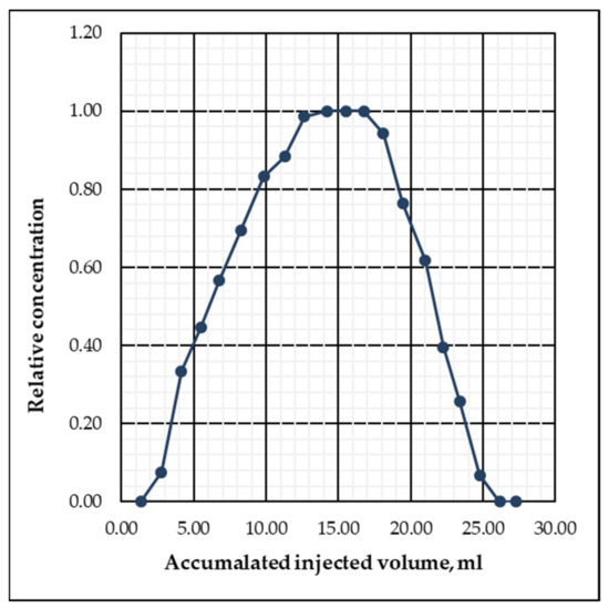 Figure 11 presents a graph showing the ratio of the out-of-sample polymer solution concentration to the input solution concentration from the accumulated injected volume.