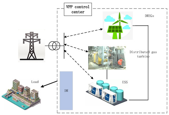 As shown in Figure 1, the VPP is usually composed of distributed renewable energy generators (DREG), distributed fuel generators, energy storage system (ESS), controllable loads, etc. In addition, the coordinated operation of multiple components can be realized with demand response. The internal components of VPP can be divided into the following categories: